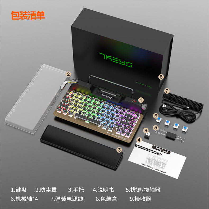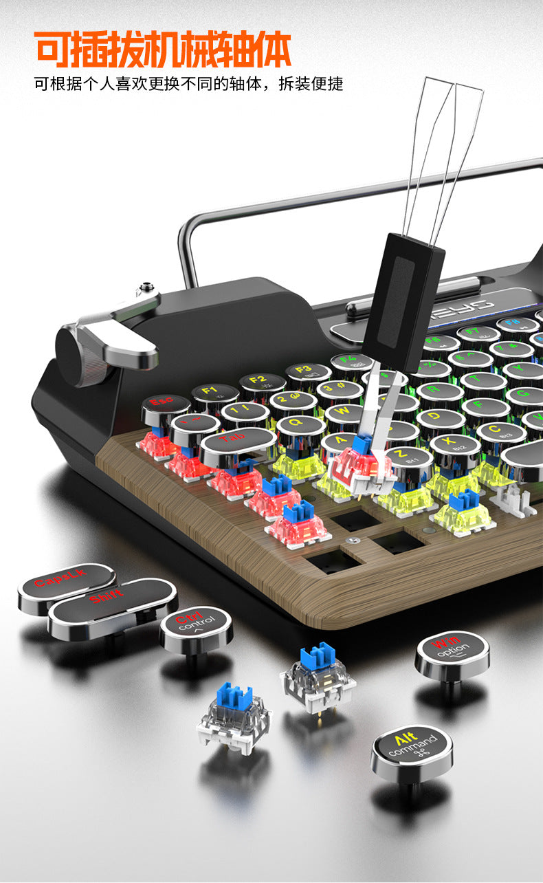Bluetooth retro typewriter mechanical keyboard three-mode connection steampunk pluggable shaft charging round keycap keyboard