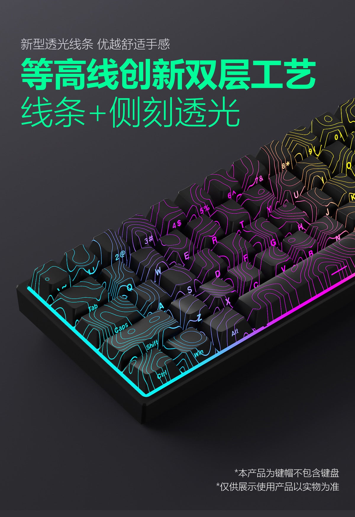 Keycaps with 3.0 - height contour, side - engraved double - light - transmissive design, made of PBT material with thermal sublimation process, suitable for MAD60 keyboard.