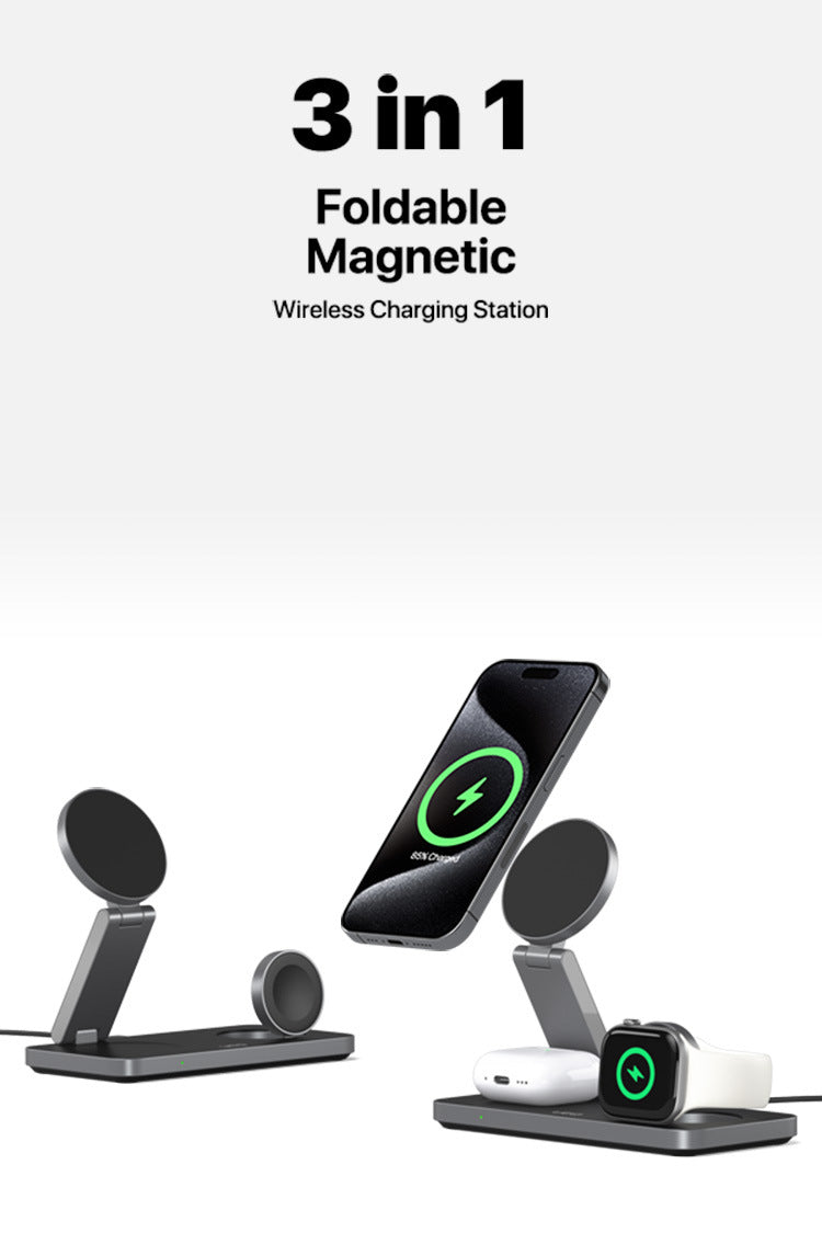 New hot-selling portable desktop magnetic three-in-one wireless charger mobile phone watch earphone multi-function charger