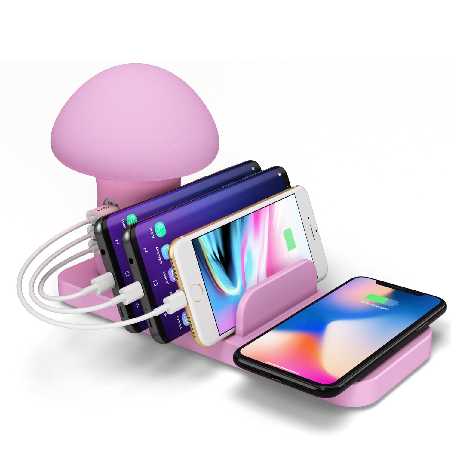 Popular bedside lamp mobile phone wireless charging bracket multi-port USB charging base pink mushroom lamp smart