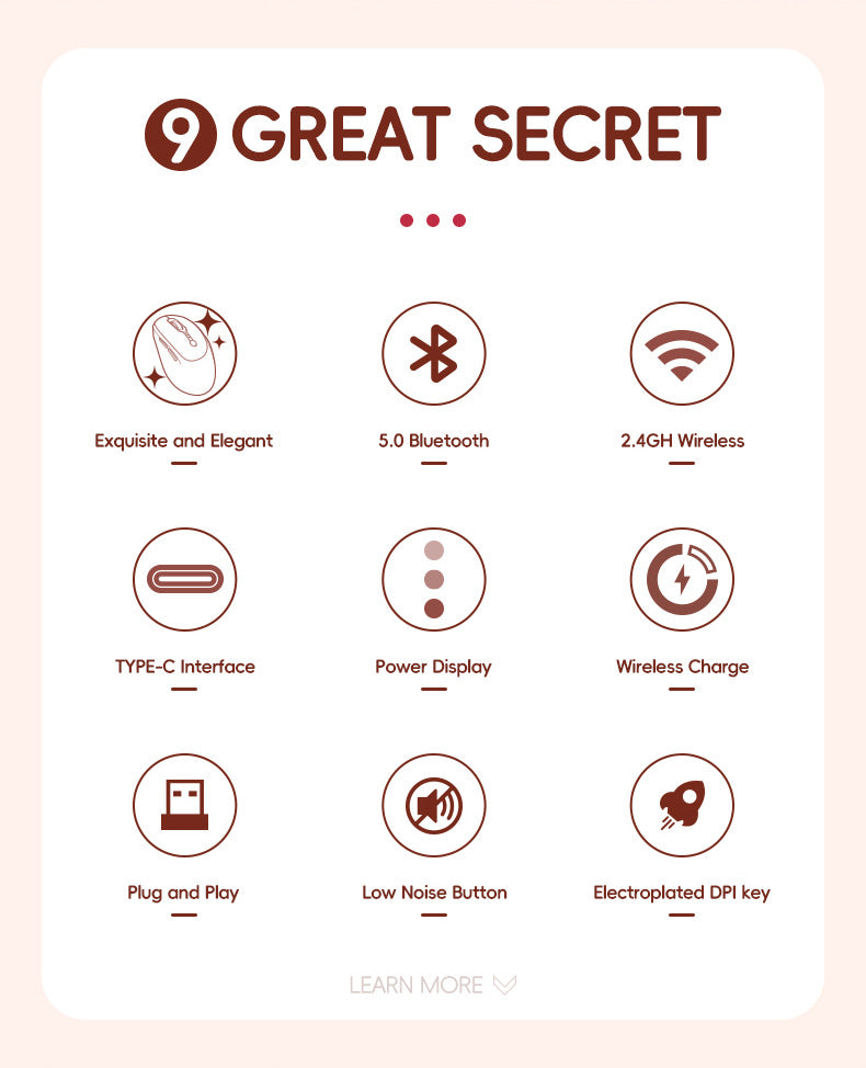 Q7 wireless mouse silent charging usb bluetooth dual mode women's pink