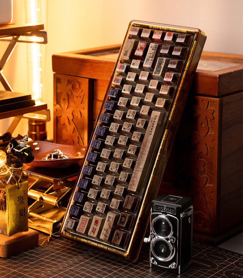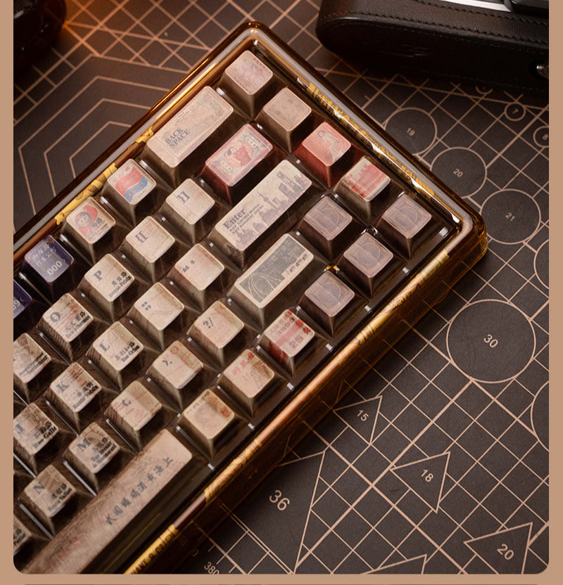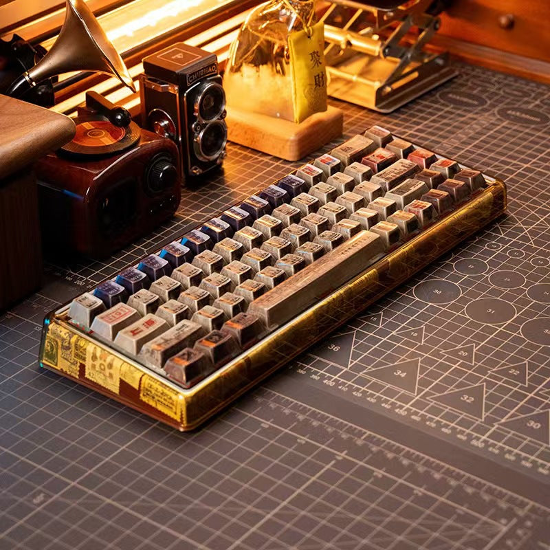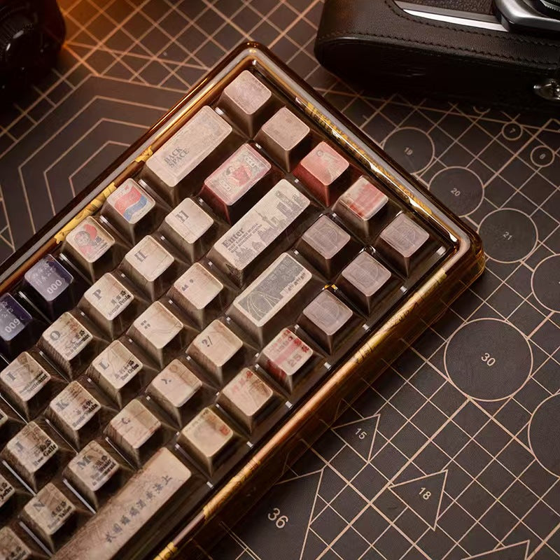 Retro style Old Shanghai metal texture keycaps, high-gloss mirror original height PBT keycaps full set