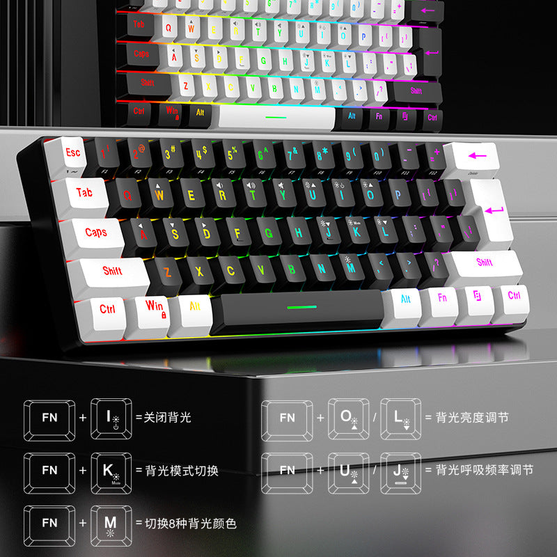 Wired 61-key Gaming Mini RGB Illuminated keyboard Mechanical feel portable compact computer keyboard