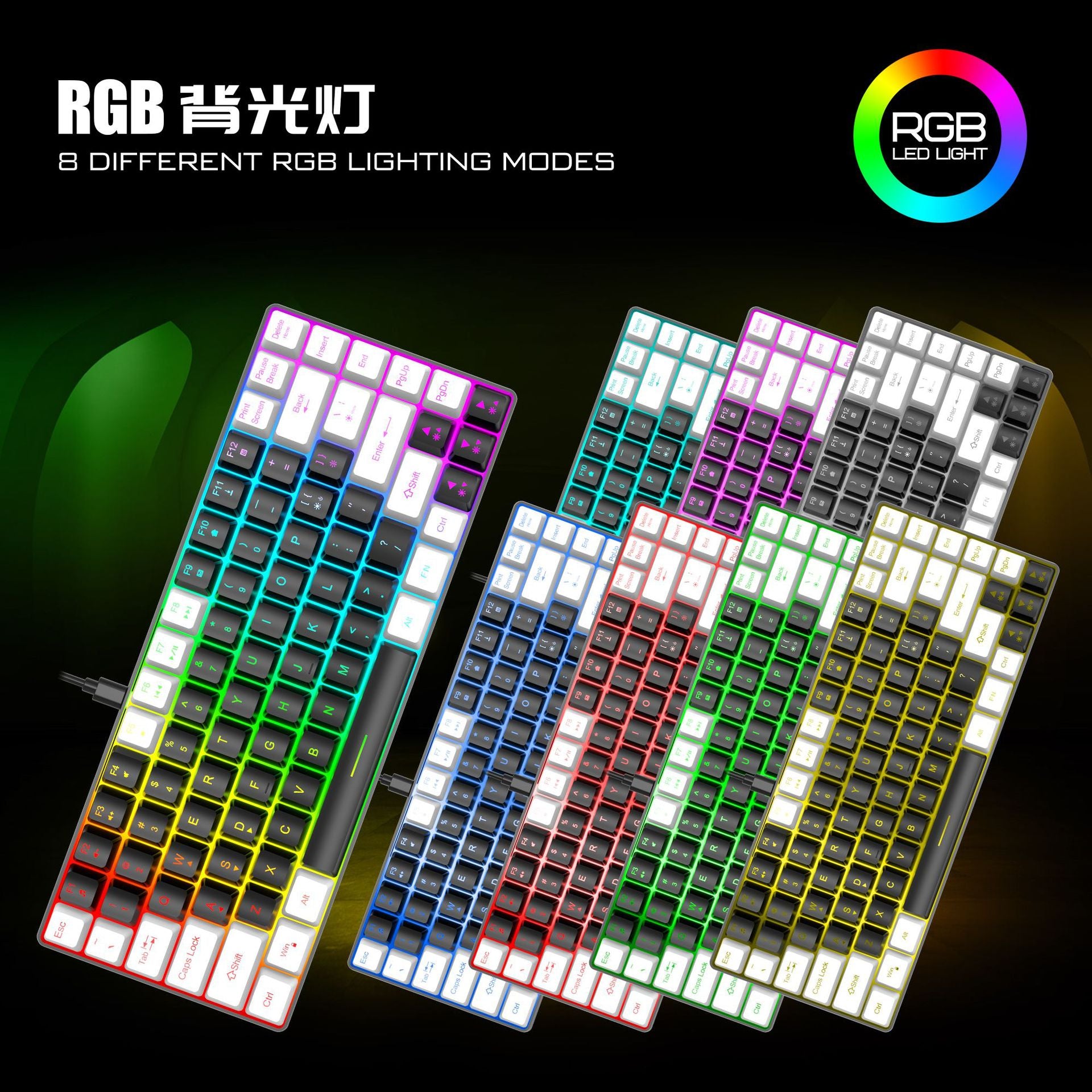 Wired private mold K84 mini keyboard RGB luminous desktop laptop office color matching